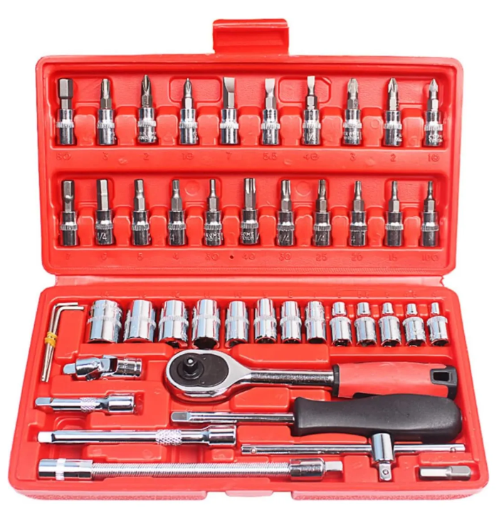 La caja de herramientas con matraca y dados es el kit perfecto for cualquier proyecto de bricolaje o reparación. Con una altura de 5 cm, es compacta y fácil de transportar, ideal for llevar a cualquier lugar.Este kit de fábrica incluye todo lo que necesitas for realizar diferentes tareas, desde apretar tornillos hasta desmontar piezas. Con un largo de 24 cm, el modelo Kit De Herramientas Matraca Con Dados Estuche Trinquete es versátil y se adapta a diferentes necesidades.El tipo de envase de esta caja de herramientas es un maletín resistente y duradero, que protege y organiza las 46 piezas que incluye. Además, cuenta con características del producto como la ausencia de vencimiento, lo que garantiza su uso a largo plazo.Con un peso de 1.5 kg, esta caja de herramientas es ligera y fácil de manejar. Su ancho de 12 cm permite un fácil acceso a las herramientas y facilita su uso.Colores de estuche: Rojo, Verde y Negro (se envía de forma aleatoria). Garantía del producto: Solo por defectos de fábrica 10 días, es decir, producto llegó roto o sin funcionamiento. El producto debe estar en las condiciones que se recibió, con su empaque original, con las etiquetas, sellos de seguridad, y contar con todas sus partes y/o accesorios. Sin rayones ni manchas, sin evidencias de manipulación o uso.
